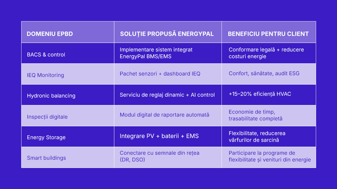 EPBD 2024 înseamnă clădiri operate pe baza datelor, nu a presupunerilor, iar EnergyPal oferă o soluție completă, de la diagnostic și integrare tehnică la monitorizare și raportare, îmbinând confortul ocupanților, conformare la reglementările europene și eficiență bugetară.
